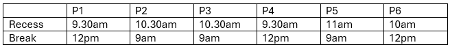 Recess and Snack Break