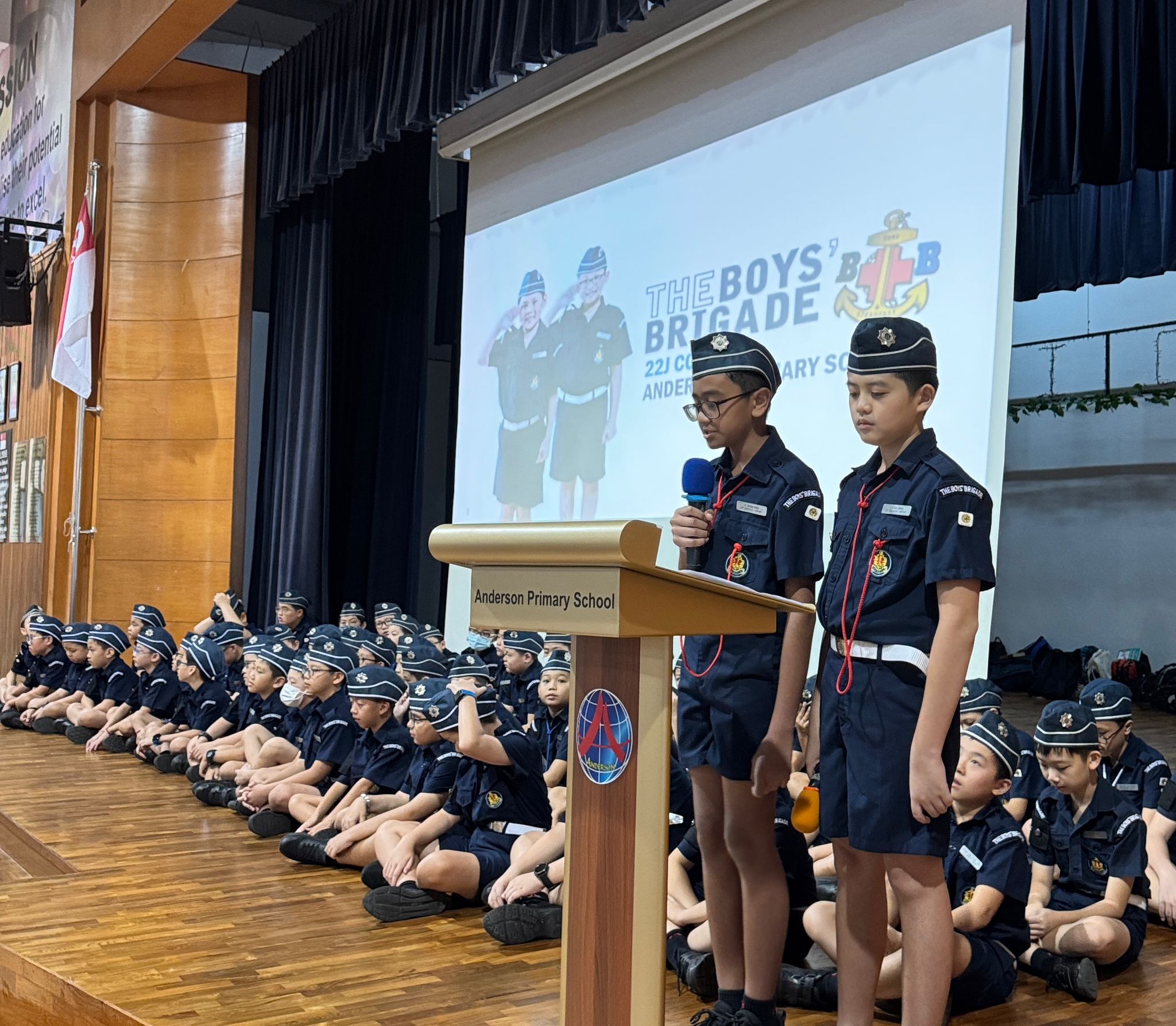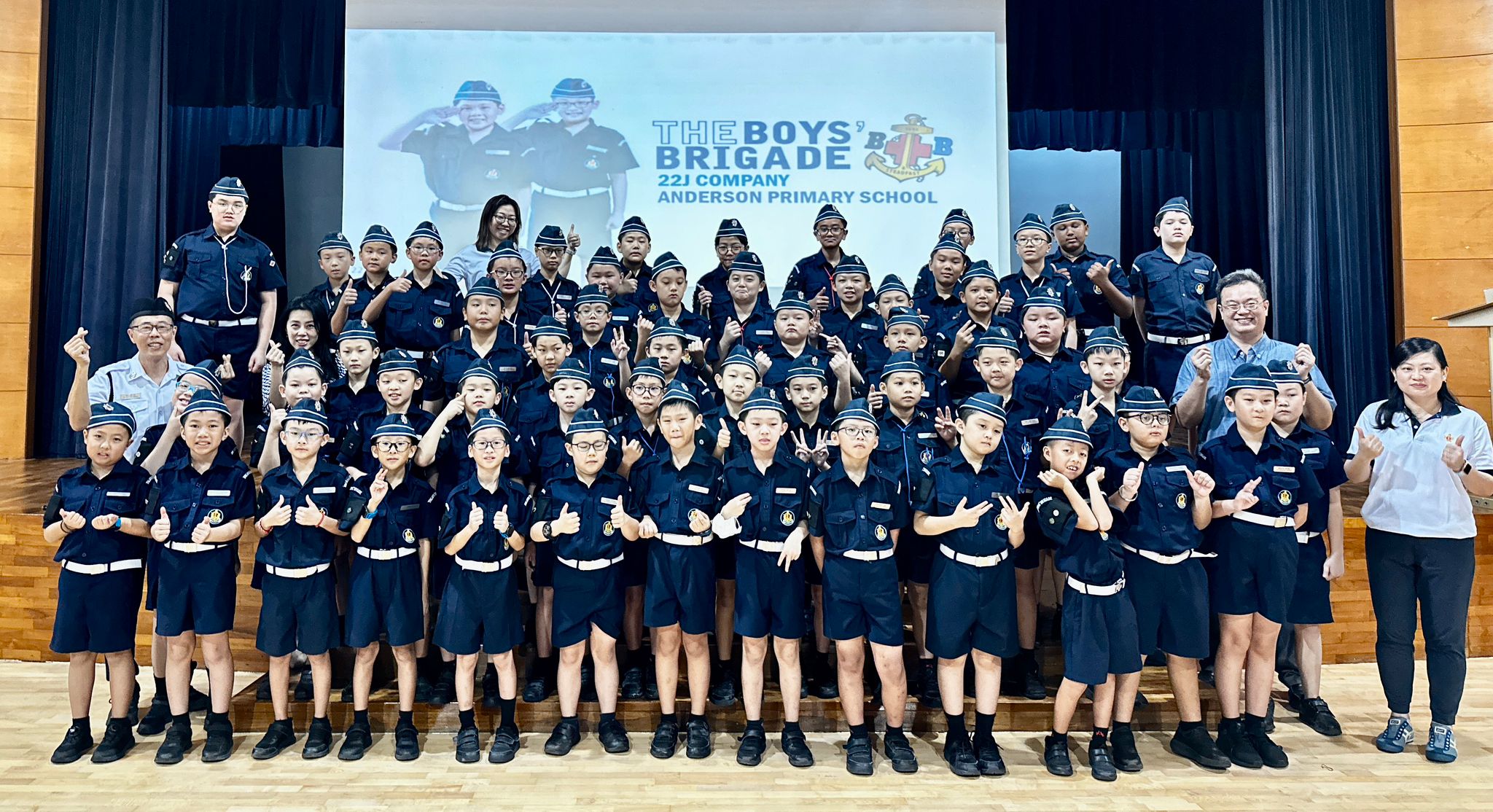 Every year on 12 January, the BB 22J Company from Anderson Primary School commemorated Boys’ Brigade(BB) Day in the school hall. The Boys felt proud donning their full uniform to form a contingent for the occasion. Our Boys are given the opportunity to give the commands to the whole school to stand in attention. Our Lead Boy will present the the BB Message and update what the activities carried out through the year.