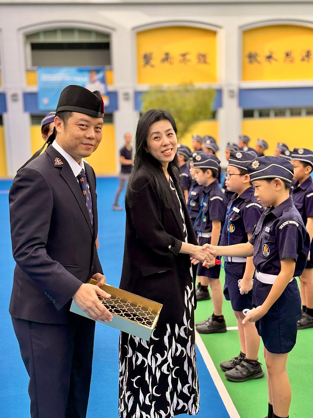 Ms Shirley Leow, Principal of Anderson Primary School, Guest of Honor, presenting awards to the Boys during the parade