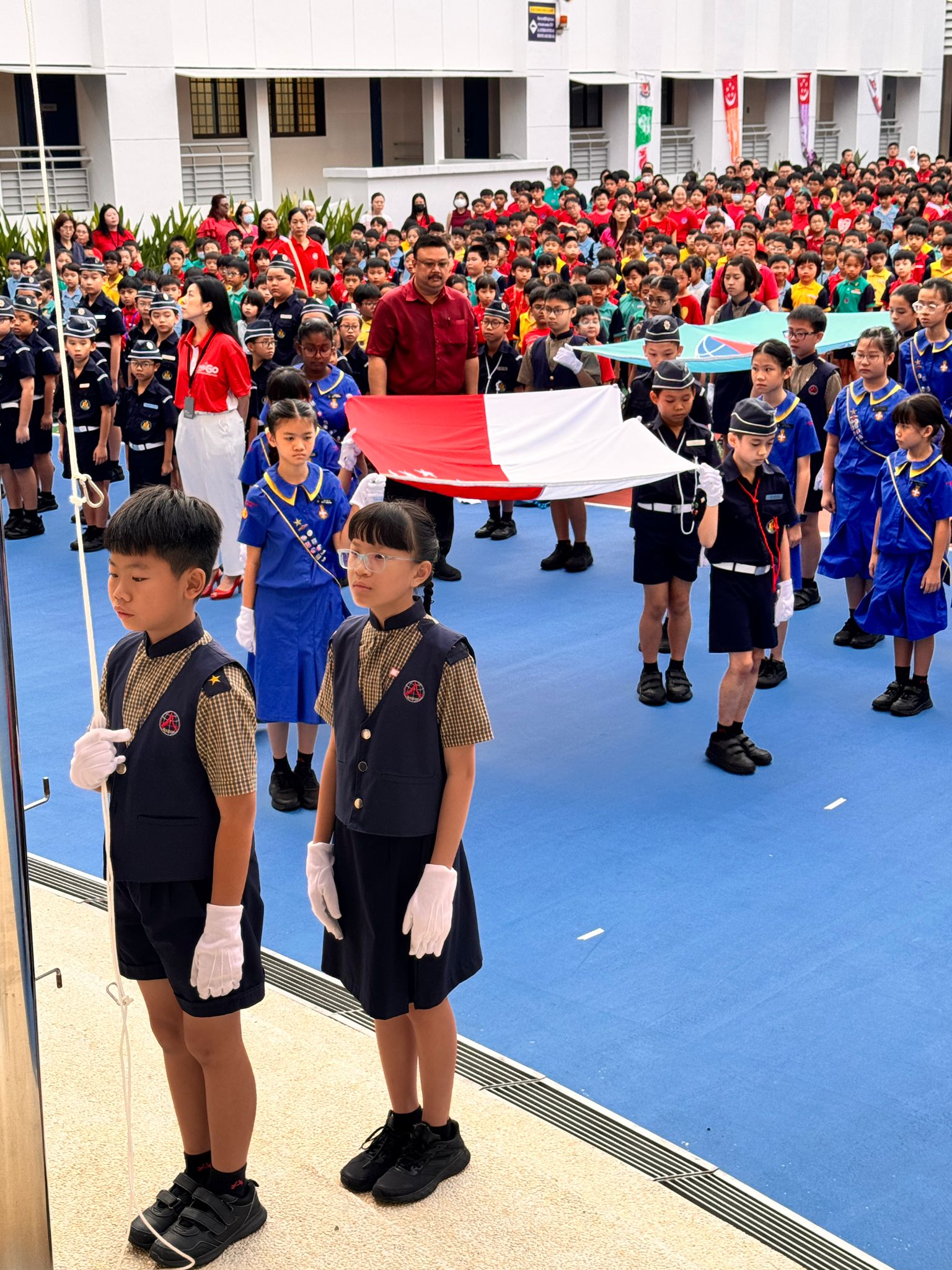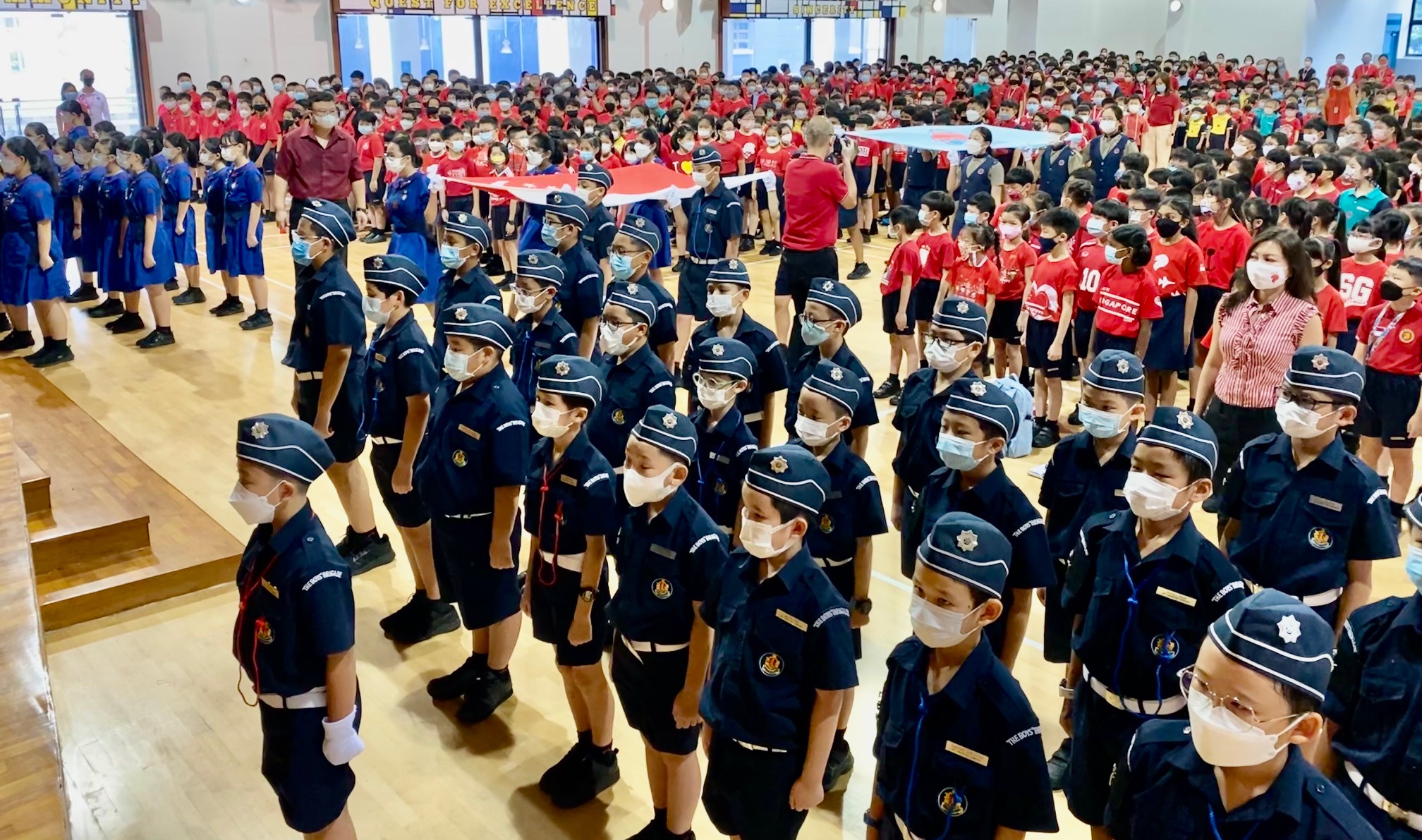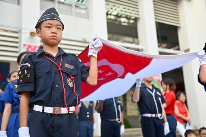 Each year, on the eve of National day, the Boys’ Brigade, Girls’ Brigade will form a continent of more than 100 Boys and Girls in the Parade Square. Three BB Boys and three GB Girls held the honorable task of carrying the state flag with grace and poise, making the entire day even more special.